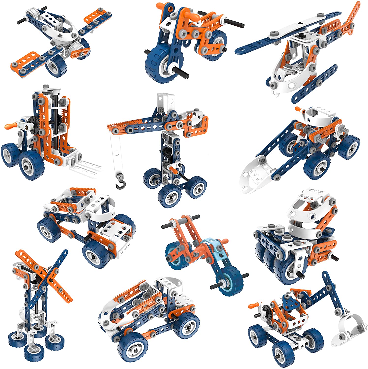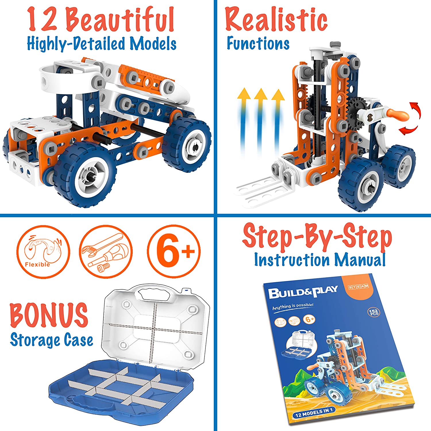 SET DE CONSTRUCCIÓN DE VÁSTAGO 12 EN 1: Presente a sus hijos el mundo de la mecánica y la imaginación infinita desafiándolos a construir sus propios autos, camiones, motocicletas, vehículos de construcción y más.