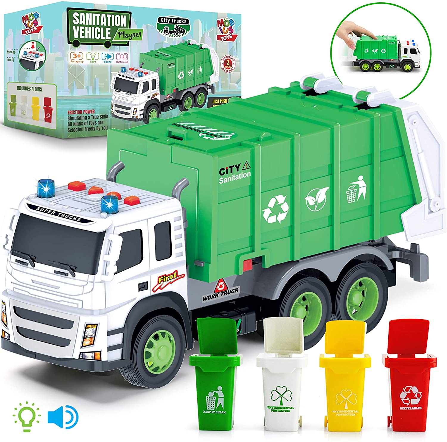 LA ALEGRÍA DE JUGAR CON SONIDOS Y LUCES: Experimente la alegría de ver cómo se iluminan los rostros de sus hijos cuando presionan los botones de la camioneta y cobra vida con luces y sonidos que llenan la habitación y el corazón de alegría. Mobius Sanitation Truck Playset les brinda a sus niños pequeños la infancia feliz que se merecen, para los 2 3 4 5 años. Con sirena y luces de emergencia, el camión de basura realista para niños es el juguete con el que no dejarán de jugar. Simplemente presione los botones, presione el Juega el vehículo hacia adelante y déjalo rodar