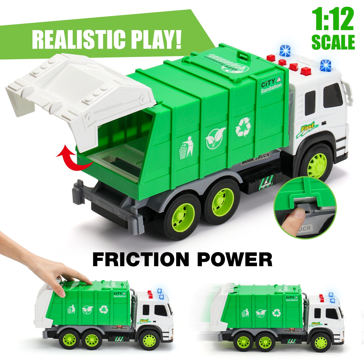 CAMIÓN ENORME PARA LA EXPERIENCIA REAL: Mobius Huge 1:12 Scale Trash Truck Toy brinda a sus hijos la mejor experiencia de juego inmersiva: con gran diversión y asombro, su hijo aprenderá a apreciar los camiones de la ciudad y el importante trabajo de protección del medio ambiente. El juguete del camión de basura Push and Go simula el mundo real, conduciendo por las calles, recogiendo basura y contenedores de basura, abriendo la puerta trasera, cargando y llevando la basura a la zona de descarga, para mantener nuestro mundo limpio.