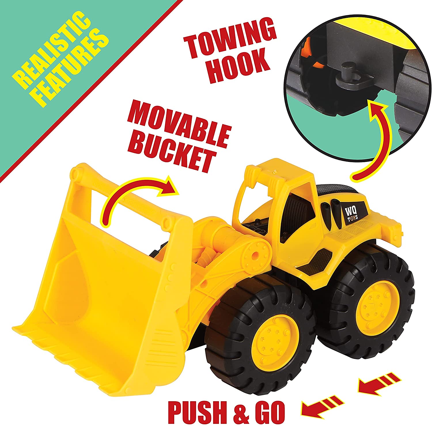 IMPULSO POR FRICCIÓN: Estos camiones de juguete para niños y niñas no solo son más fuertes y duraderos, sino que también cuentan con ruedas para empujar y mover que permiten que los niños los hagan rodar sobre tierra, césped, rocas, la alfombra de la sala de estar y todas esas superficies de juego divertidas.