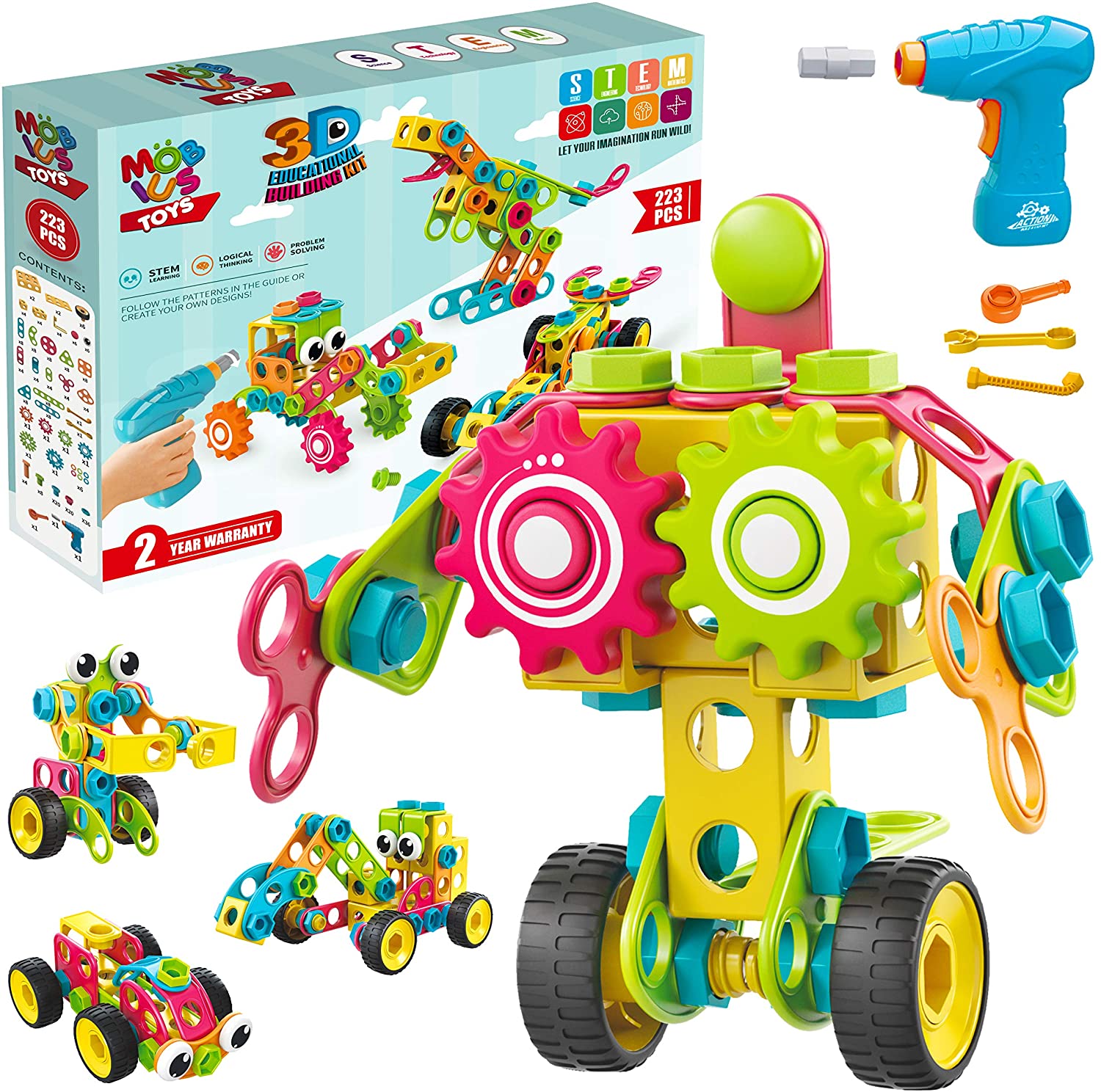 {TODOS LOS MODELOS POSIBLES Y MÁS} - Con 223 PCS, nuestro kit de construcción educativo tiene todas las piezas necesarias y más: su hijo ya no se sentirá frustrado porque falten ciertas piezas necesarias para un modelo. Ensamble fácilmente todos los modelos posibles en nuestra guía paso a paso. Brinde a sus hijos la experiencia que se merecen: ábrales un mundo de posibilidades con el juguete STEM de Mobius. 34 modelos son solo el comienzo: deja volar la imaginación de tus hijos y crea sus propios diseños únicos