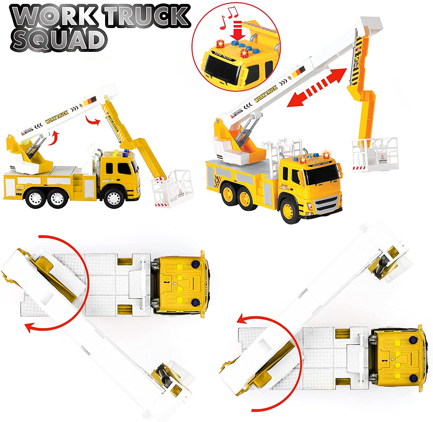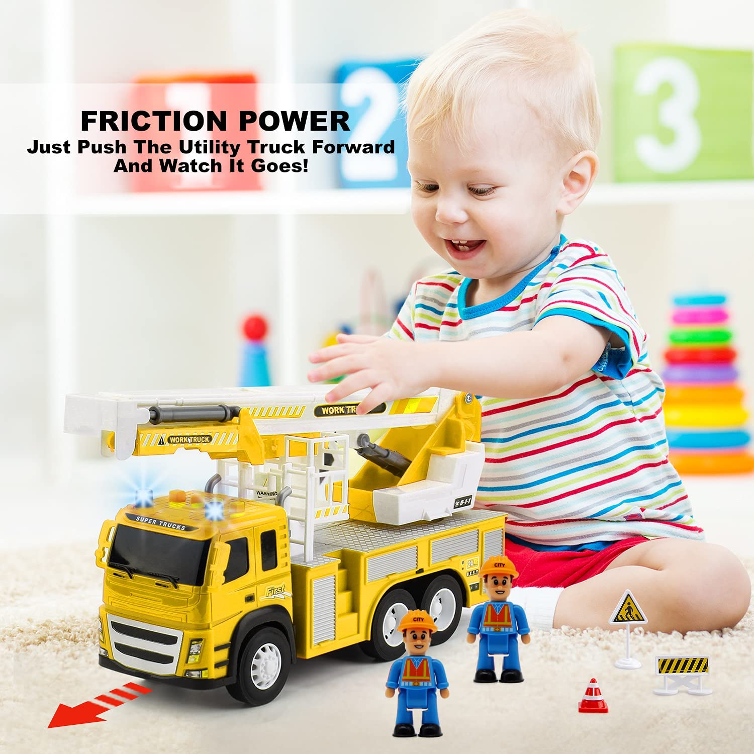TIEMPO DE CALIDAD EN FAMILIA: Disfrute de un tiempo de calidad en familia o simplemente deje que su hijo juegue solo con el juego Duty Truck Playset, un gran camión utilitario con escalera retráctil que gira 360 grados. Con el mecanismo de fricción de empujar y listo, usted y su hijo simplemente no tendrán suficiente, solo harán que deseen volver una y otra vez: es increíble lo divertido que es ver cómo las grandes ruedas giran y el camión corre a toda velocidad por la habitación o el patio.